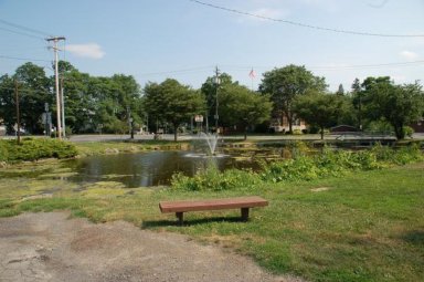 The band stand pavillion between the library and pond. It's very peaceful and pretty there when you just feel like sitting and watching the world go by. It is also the focal point for many speakers at celebrations and holiday functions.