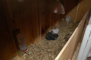 While she was exercising her leg and showering, I went to the brooding house, fed and watered everybody there, fed and watered the young ducks and put nylon screen on the left side where the ducks used to be. After that, I split the bird load by putting half the chickens on the left and the rest on the right top. The bunnies are still on the left bottom until I get two hutches built and two more male pens and then they will move to the outside area. The turkeys are on the right bottom. That gives the three of them a 24” x 48” x 36” high area where they can run, fly, jump eat and drink. They love it!!